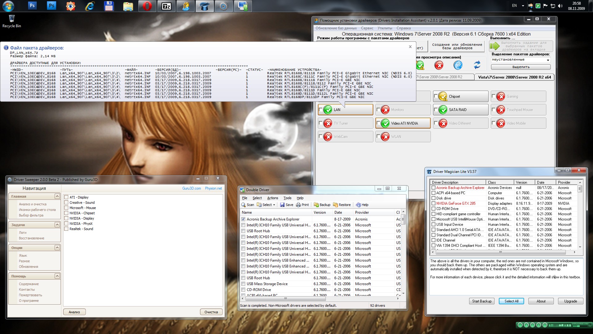 На диске собраны драйвера для всех популярных устройств; драйвера отсортированы по удобным и наглядным катерогиям и перепакованы для уменьшения размера. Использованы драйвера на основе пакетов от Bashrat de Sneaky.