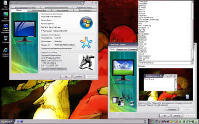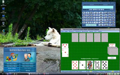 По умолчанию ставится тема оформления BlackBlue, звуковая схема Windows7, курсоры Holiday и волчий скринсейвер