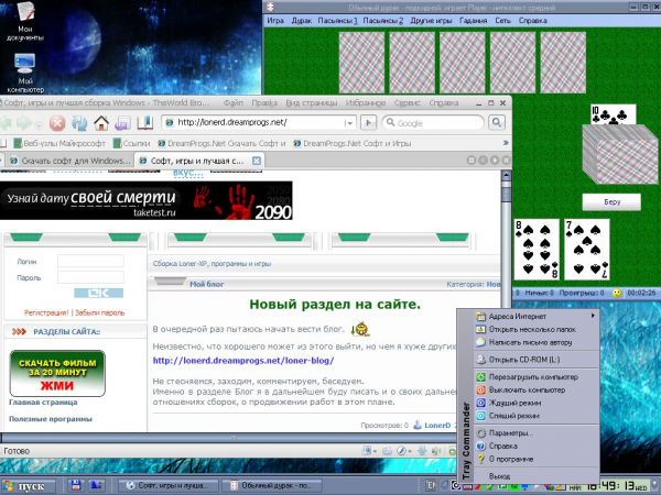 [+] Tray Commander 2.3 - управление компьютером из трея, позволяет управлять при помощи мышки или назначаемых комбинаций клавиш часто используемыми системными программами непосредственно из системной панели