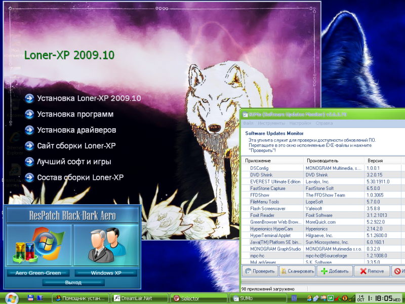 В состав сборки Loner-XP входят следующие компоненты: