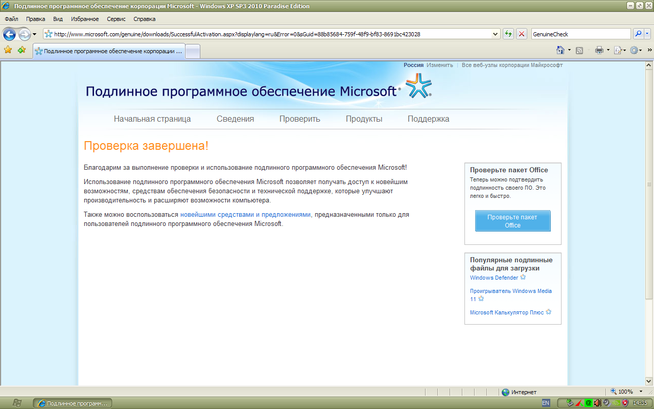 Cистема проходит проверку на валидность на сайте Microsoft на момент релиза